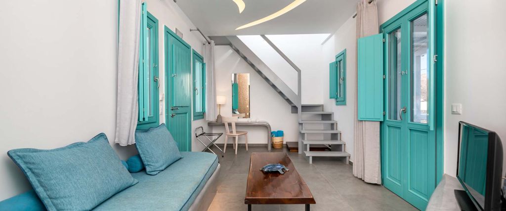 Each loft suite looks out to the elegantly designed pool and lounge area of the property and is equipped with outdoor furniture and sunbeds. Bask in the Cycladic sun, turn off, unplug and unwind...
